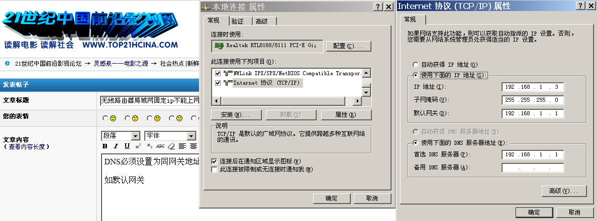 21世纪中国前沿影视论坛 → 灵感泉——电影之源 → 社会热点|新鲜生活 → 无线路由器局域网固定ip不能上网原因 |